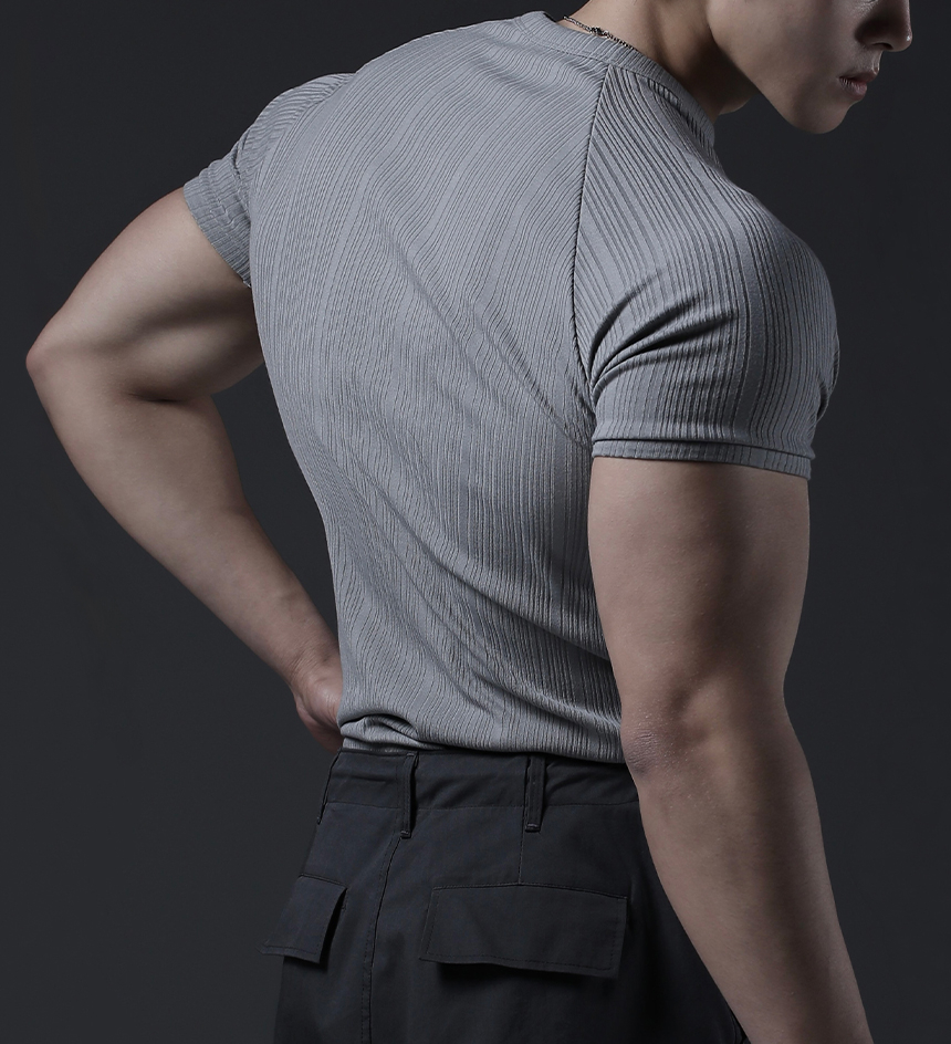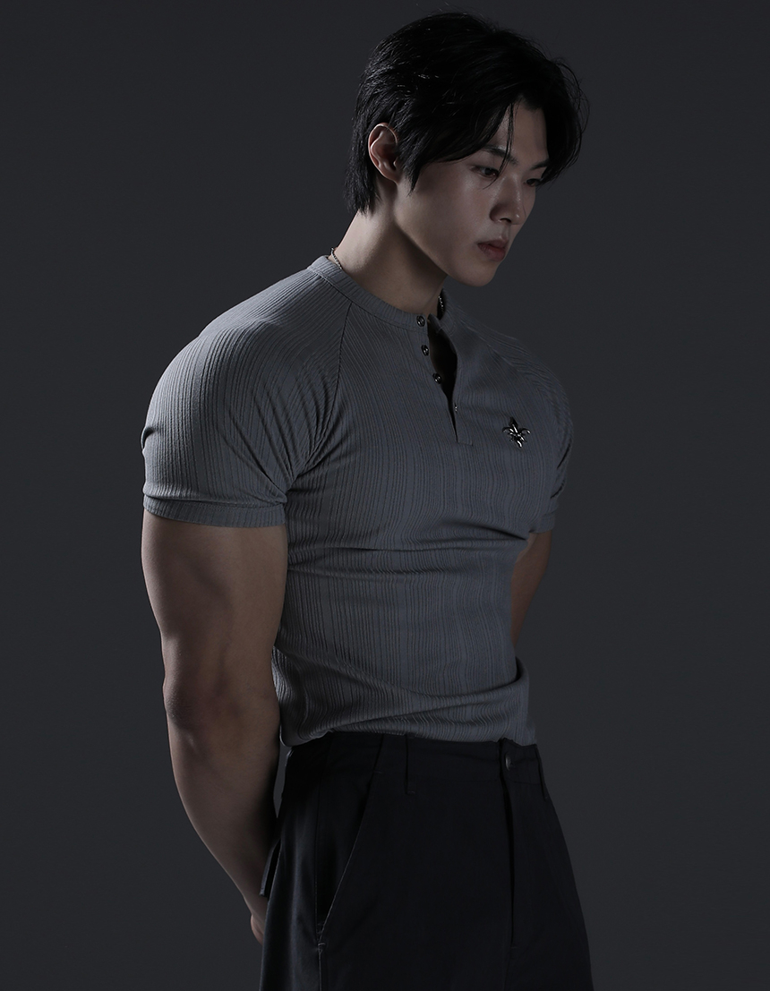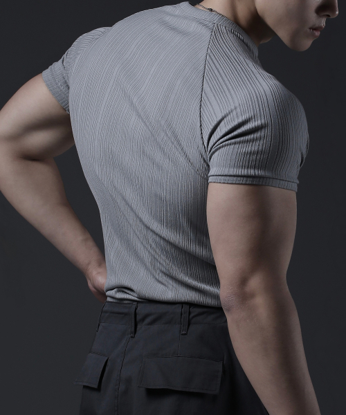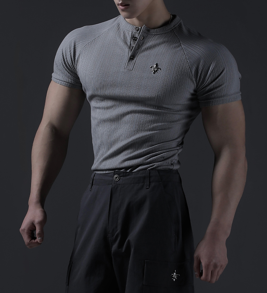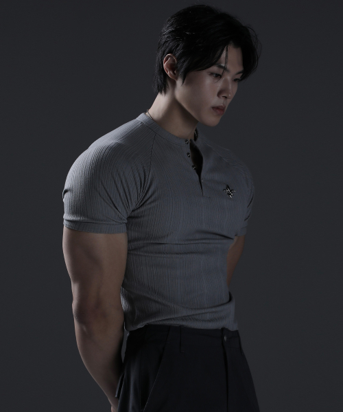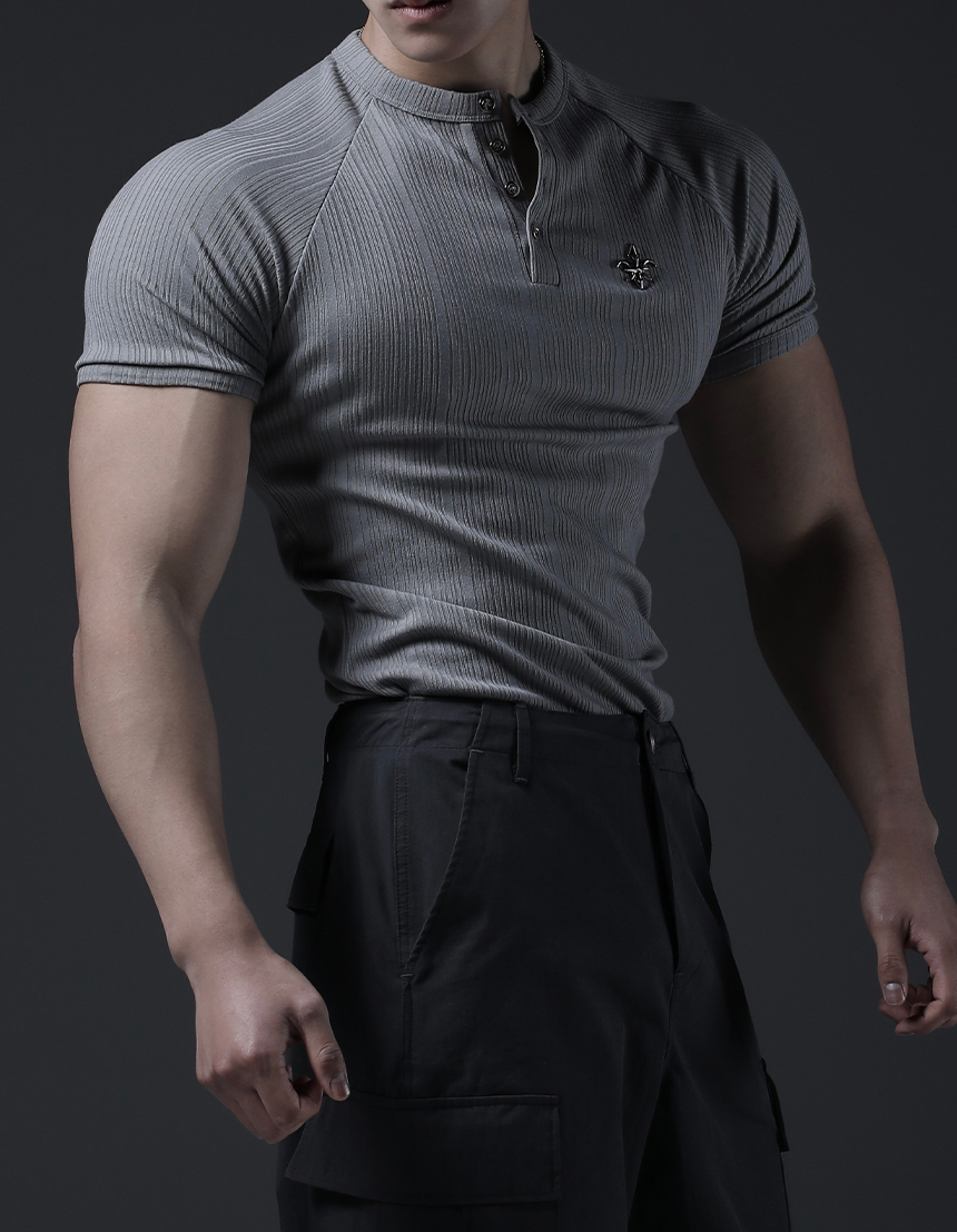 카미드 글로리 헨리넥 머슬핏 골지 반팔티셔츠 [그레이]