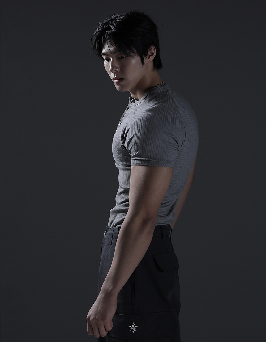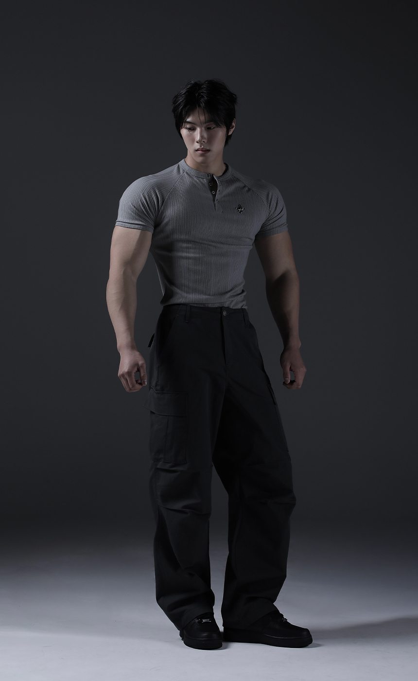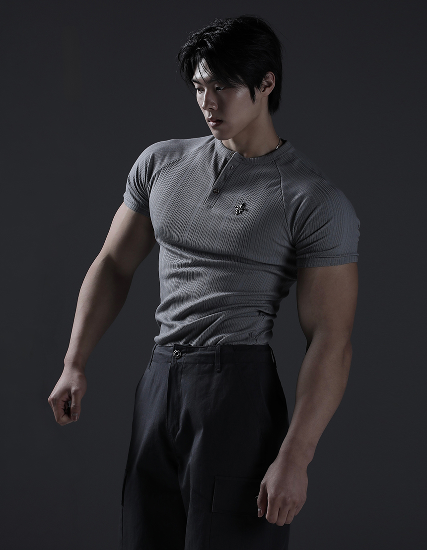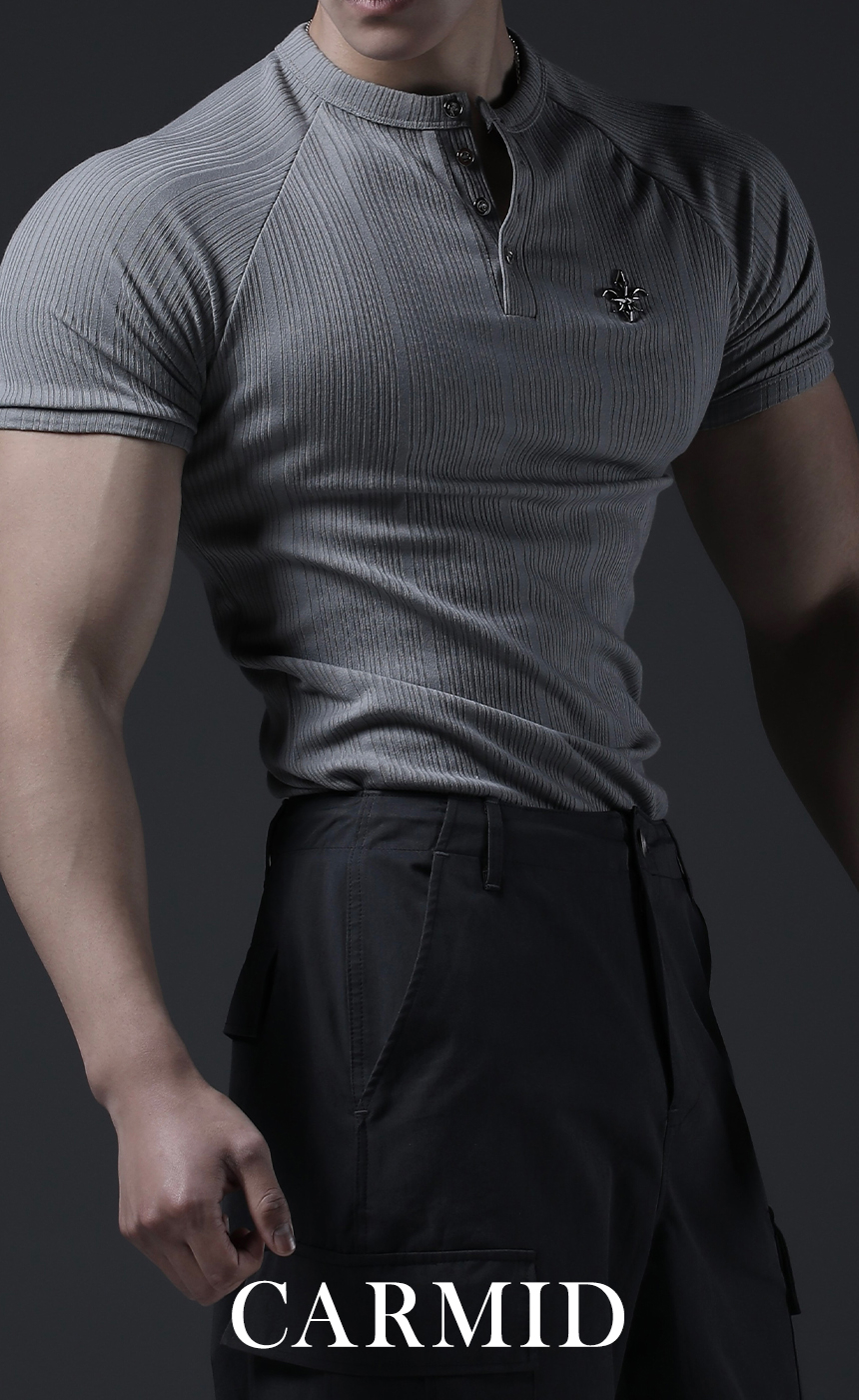 카미드 글로리 헨리넥 머슬핏 골지 반팔티셔츠 [그레이]