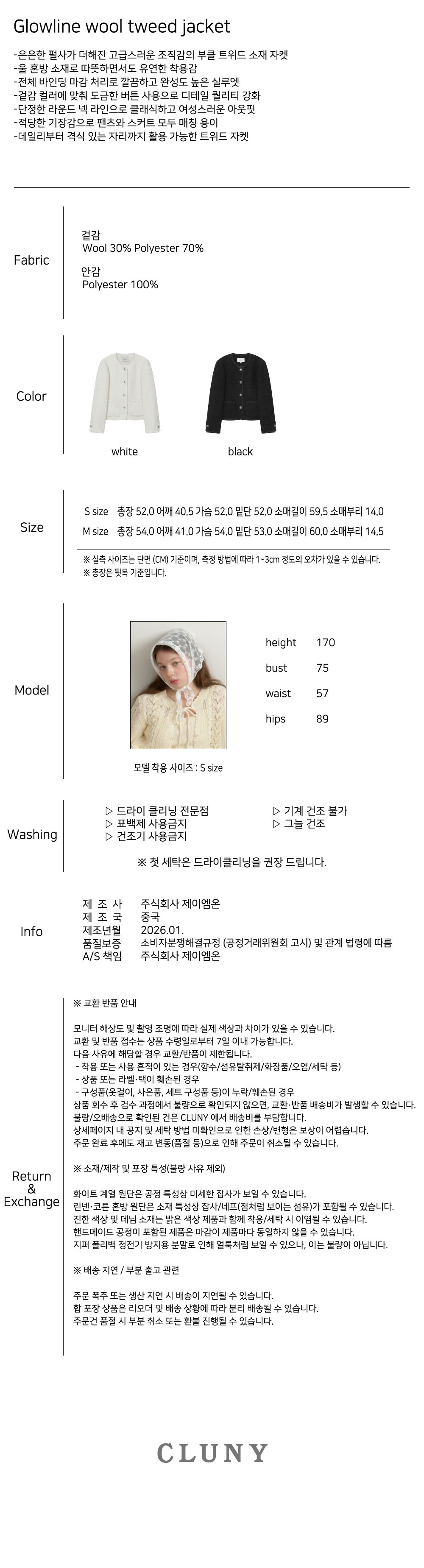 클루니(CLUNY)는 일상 속 클린한 실루엣을 지향하는 여성복 브랜드입니다. 여성들이 일상에서 자신감을 가질 수 있도록 우아하고 시크한 룩을 제안합니다.