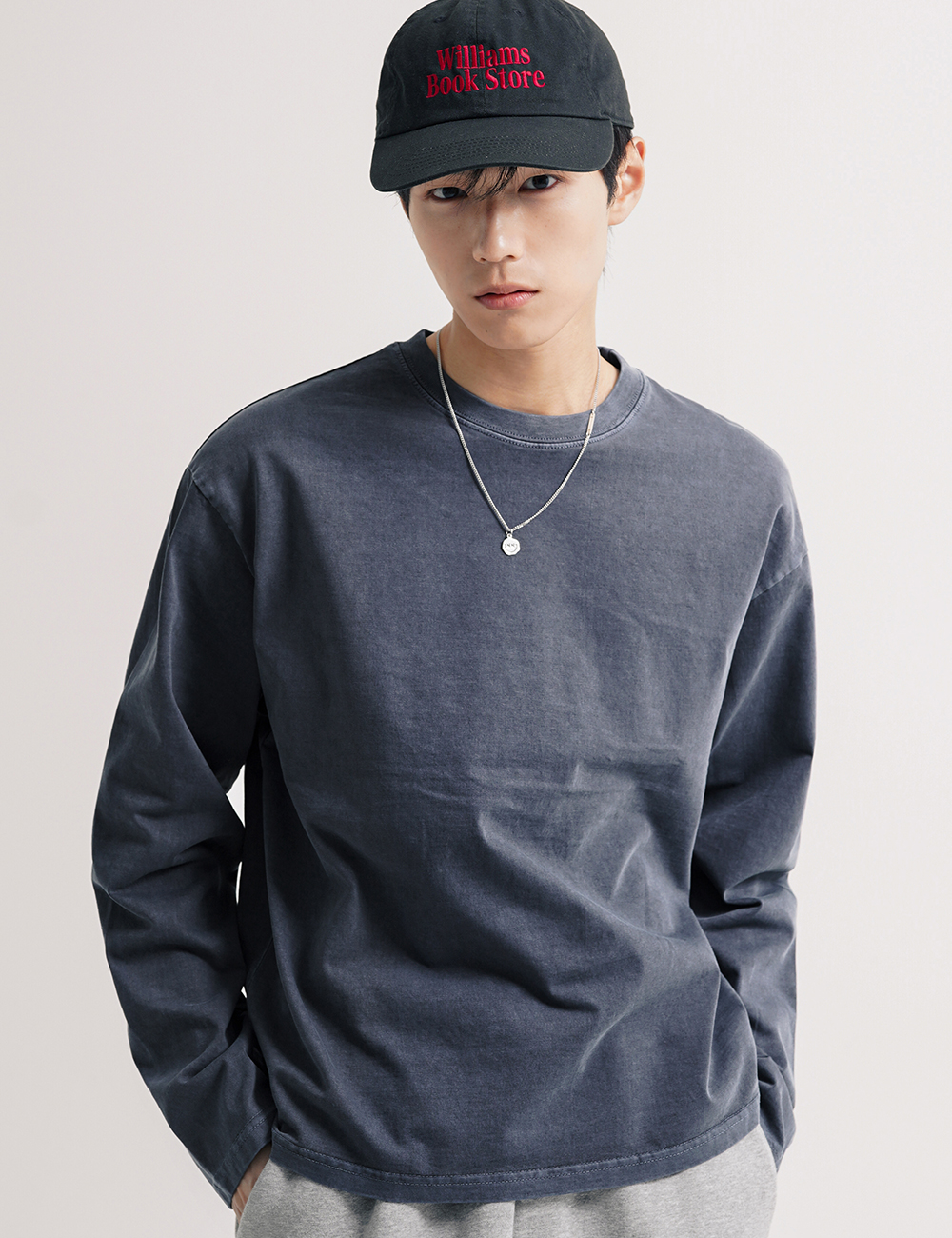 보이 크롭 피그먼트 긴팔티셔츠 스톤네이비 KJLT2683