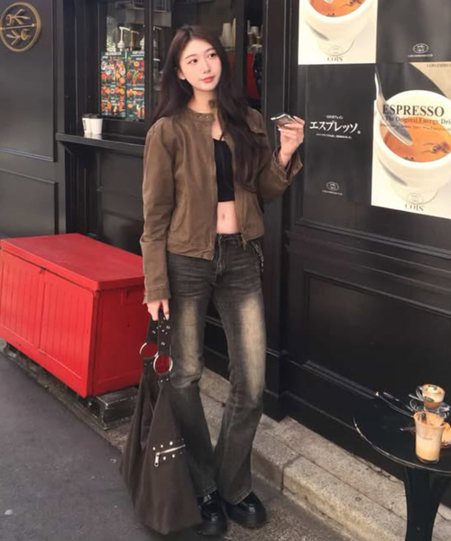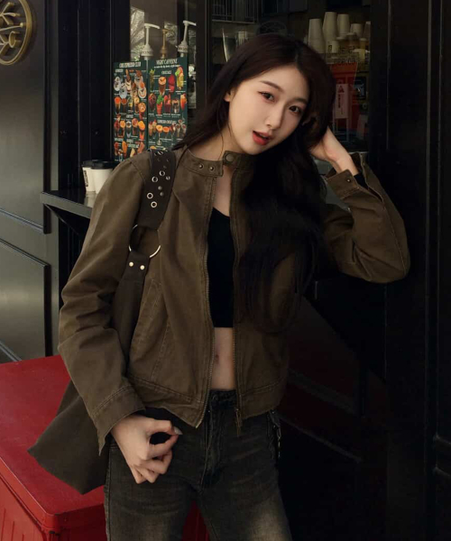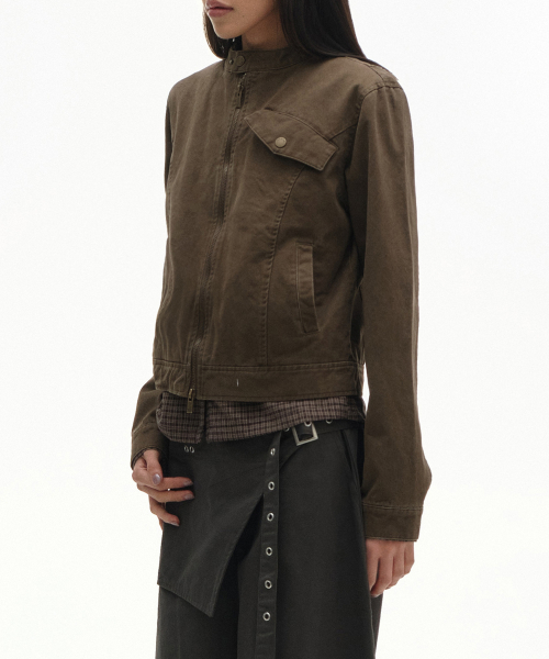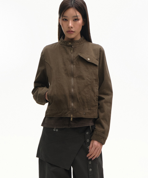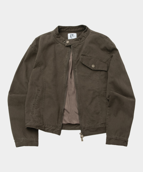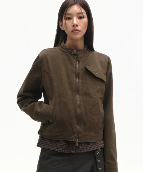 빈티지 샌드 인시전 코튼 워싱 싱글 카라 세미 피티드 라이더 자켓 [브라운]