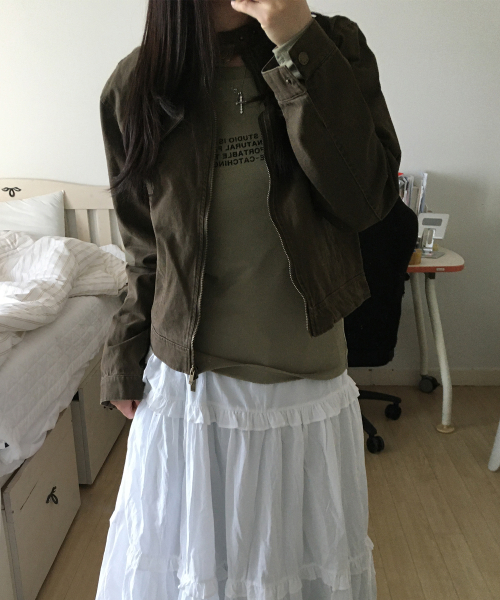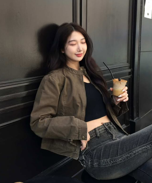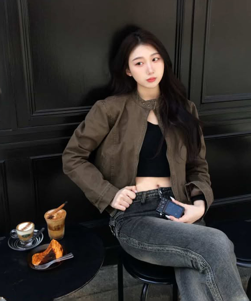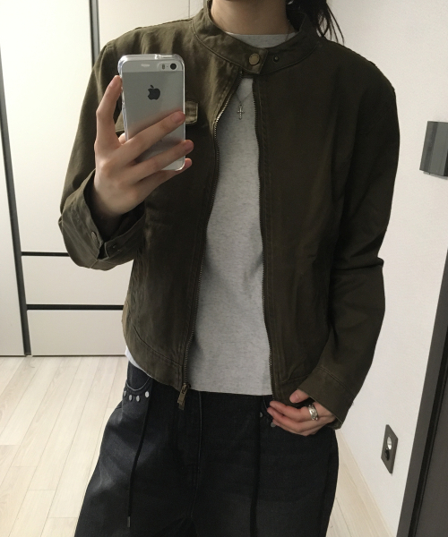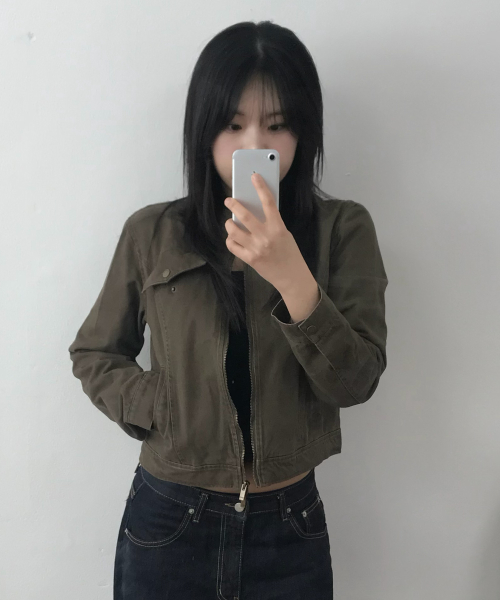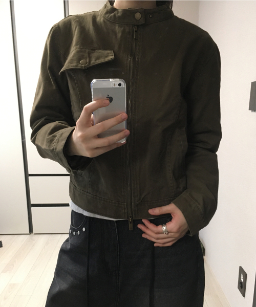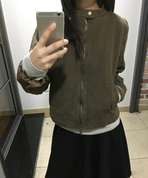 벨티드 리벳 인시전 슬림 라인 피티드 블루종 코튼 긴팔 자켓_2COLOR