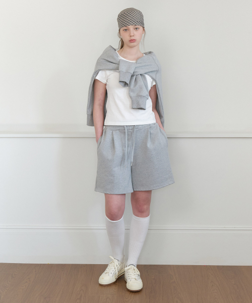 Sweat cotton banded shorts - gray