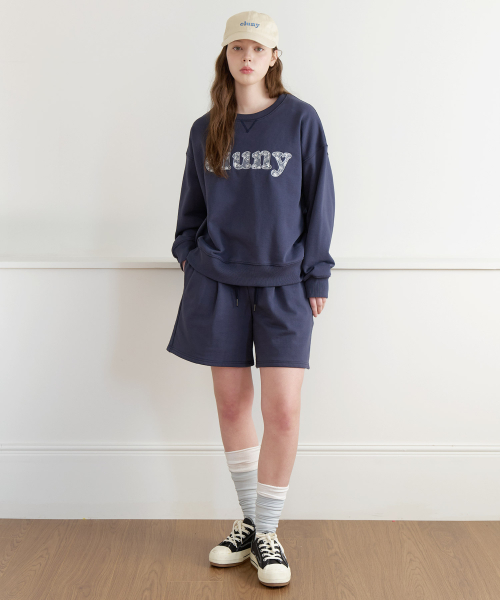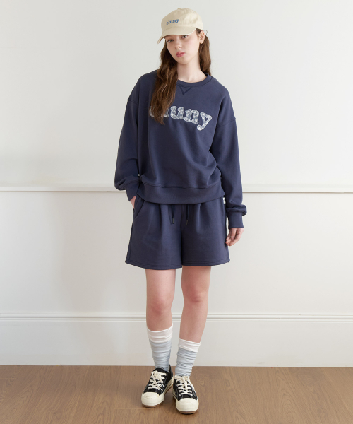 Sweat cotton banded shorts - navy