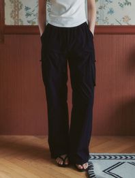 Solid Pocket Wide Cargo Pants - black