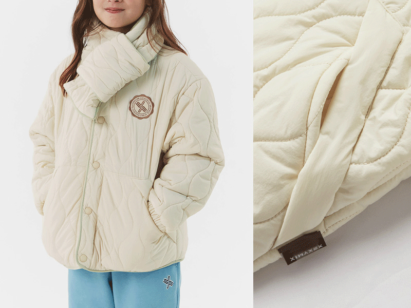 웨이브 퀼팅 목도리 점퍼 크림 KA1003G