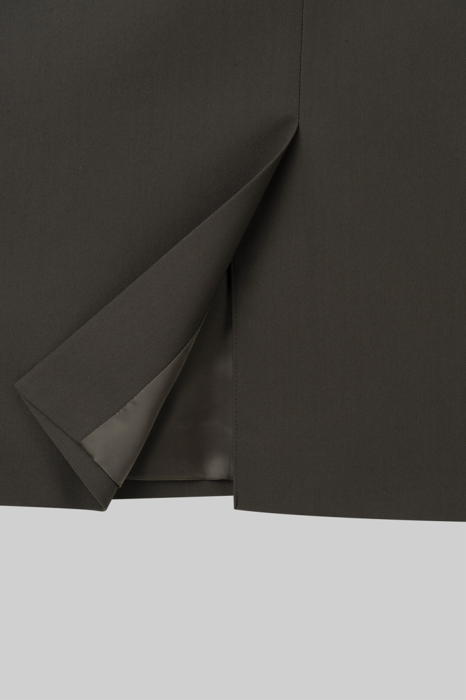 - 폴리에스터·아세테이트 혼방 원단을 사용해 매끄러운 터치감과 안정적인 실루엣 구현