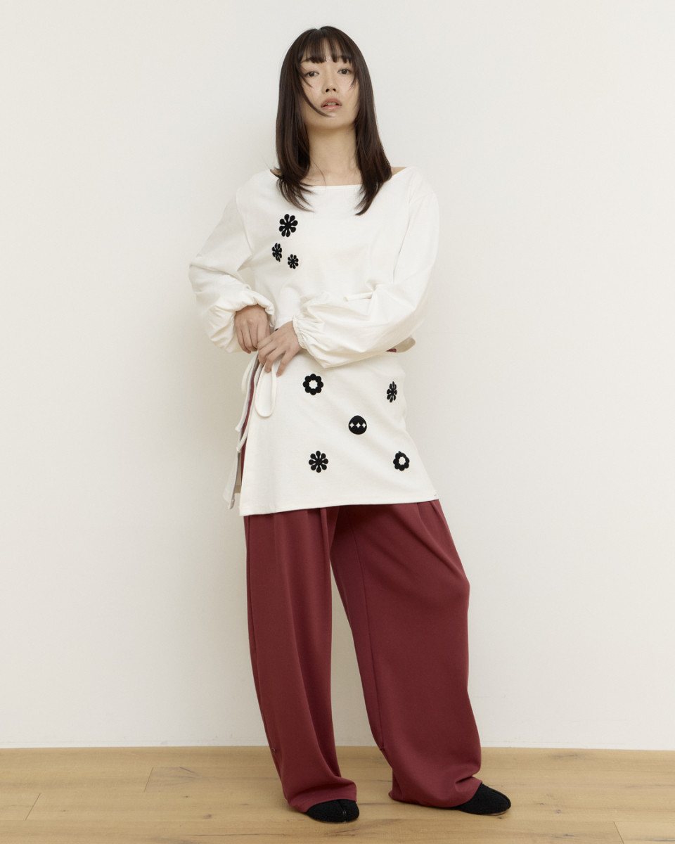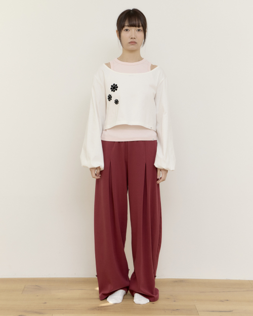 또한, 앞면에 인버티드 플리츠 주름을 잡아 자연스럽게 떨어지는 핏이 나오도록 제작하였습니다.
