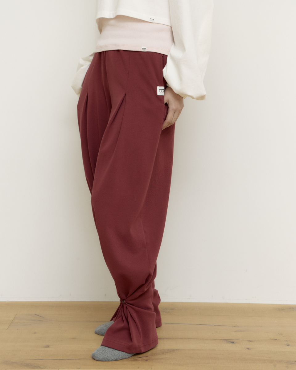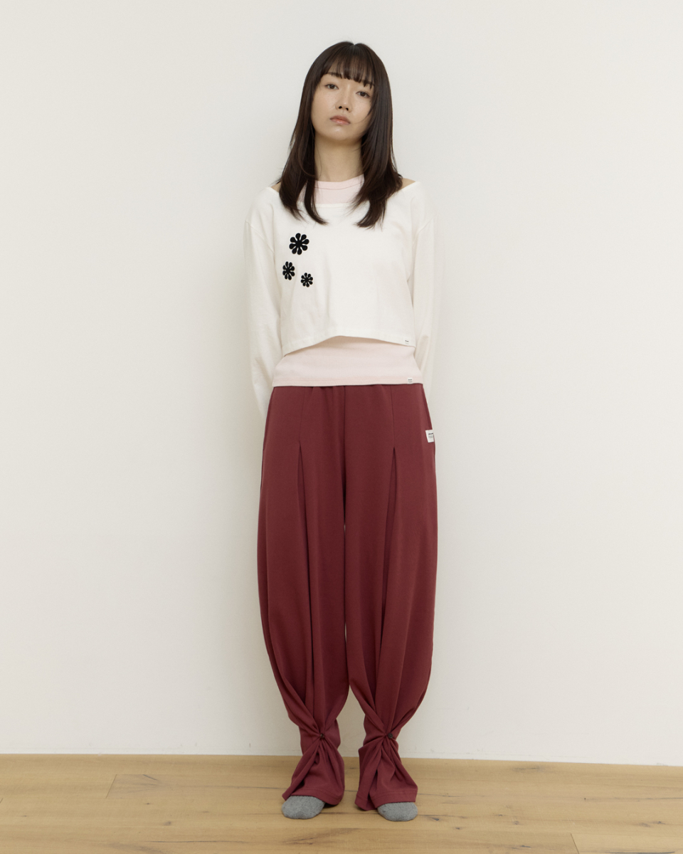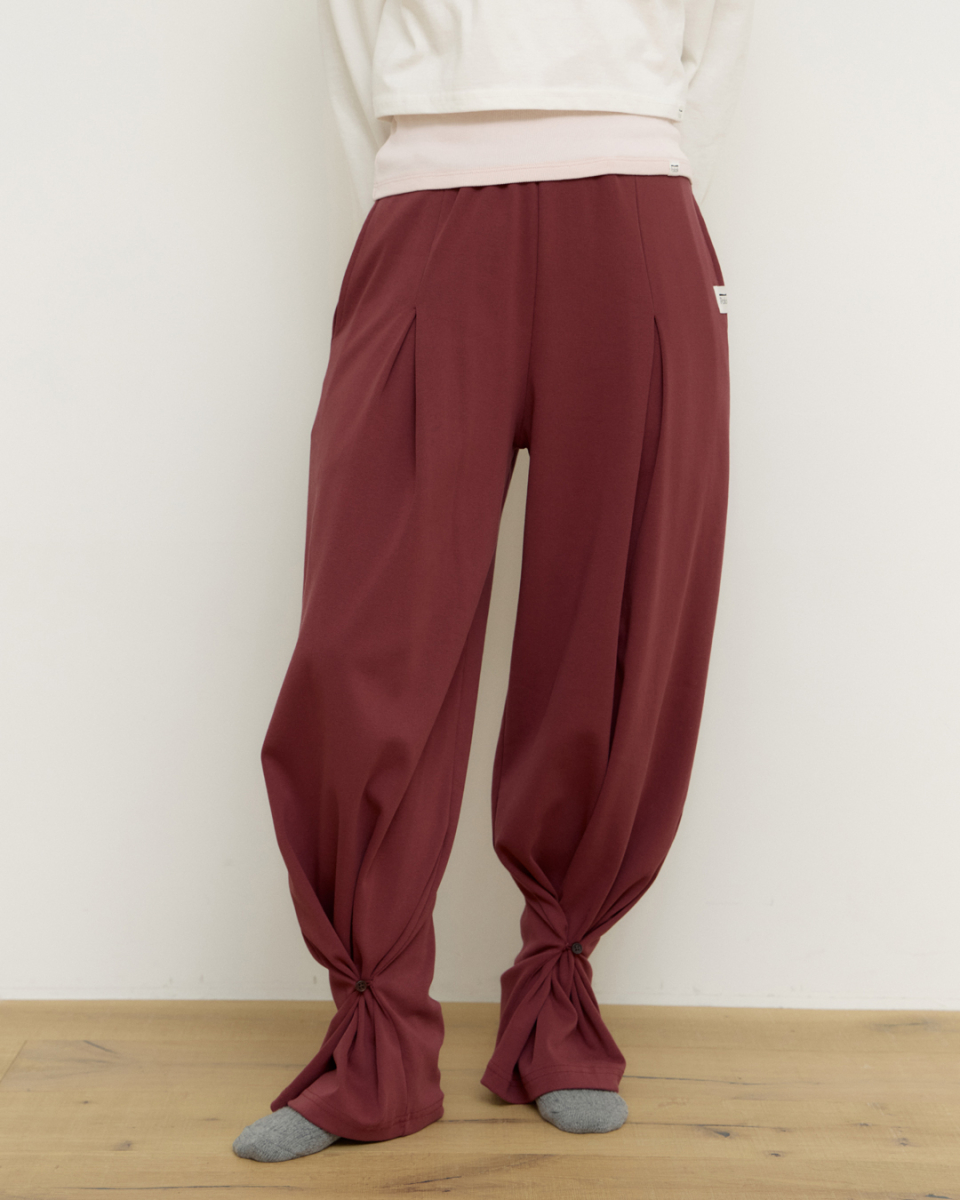 발목 부분에 있는 고리와 단추가 포인트인 팬츠입니다.수련 시 역자세 동작을 할 때 고리에 단추를 걸어 발목을 조일 수 있습니다. (널널하게 조이는 정도)
