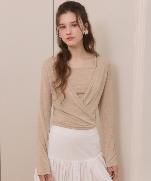 Soft touch mood wrap t shirts set - 3color