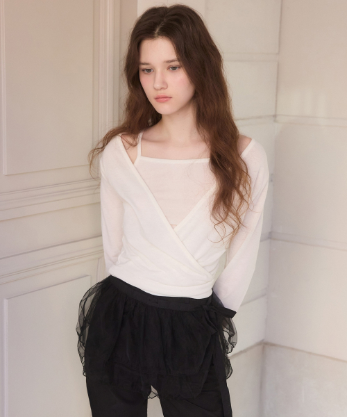 Drape double ribbon t shirts - 3color
