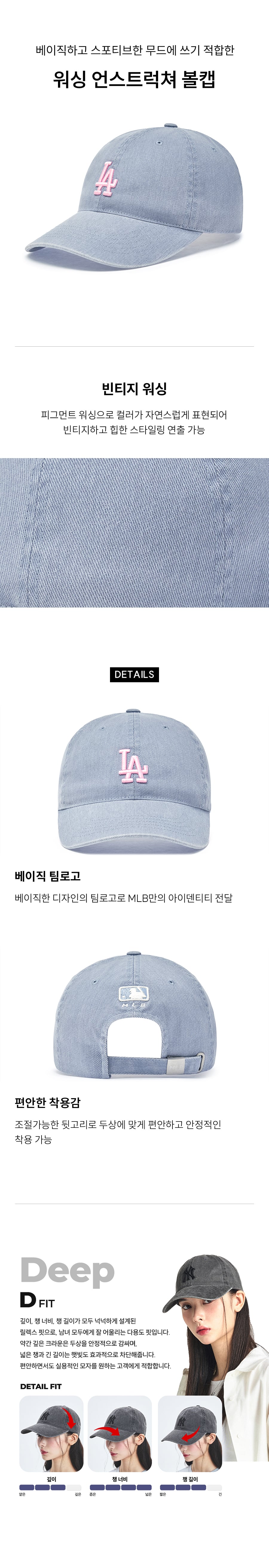 베이직 워싱 언스트럭쳐 볼캡 LA (Sky blue)