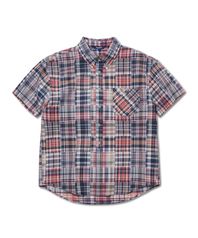 페이디드 마드라스 버튼다운 반팔 셔츠 레드_FS1WR57U
