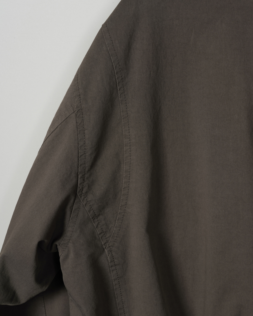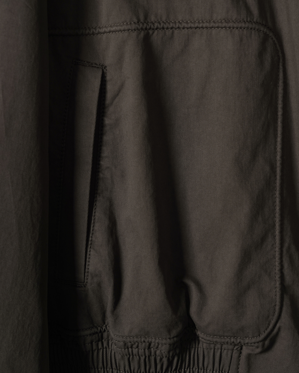 30수 두께감의 고밀도 코튼 트윌을 겉감으로, 안감으로는 코튼 나일론 혼방 소재를 사용하여 견고하면서도 자연스러운 질감을 지녔으며, 바이오 워싱과 가먼트 워싱을 거쳐 은은한 컬러와 캐쥬얼한 분위기를 구현했습니다.