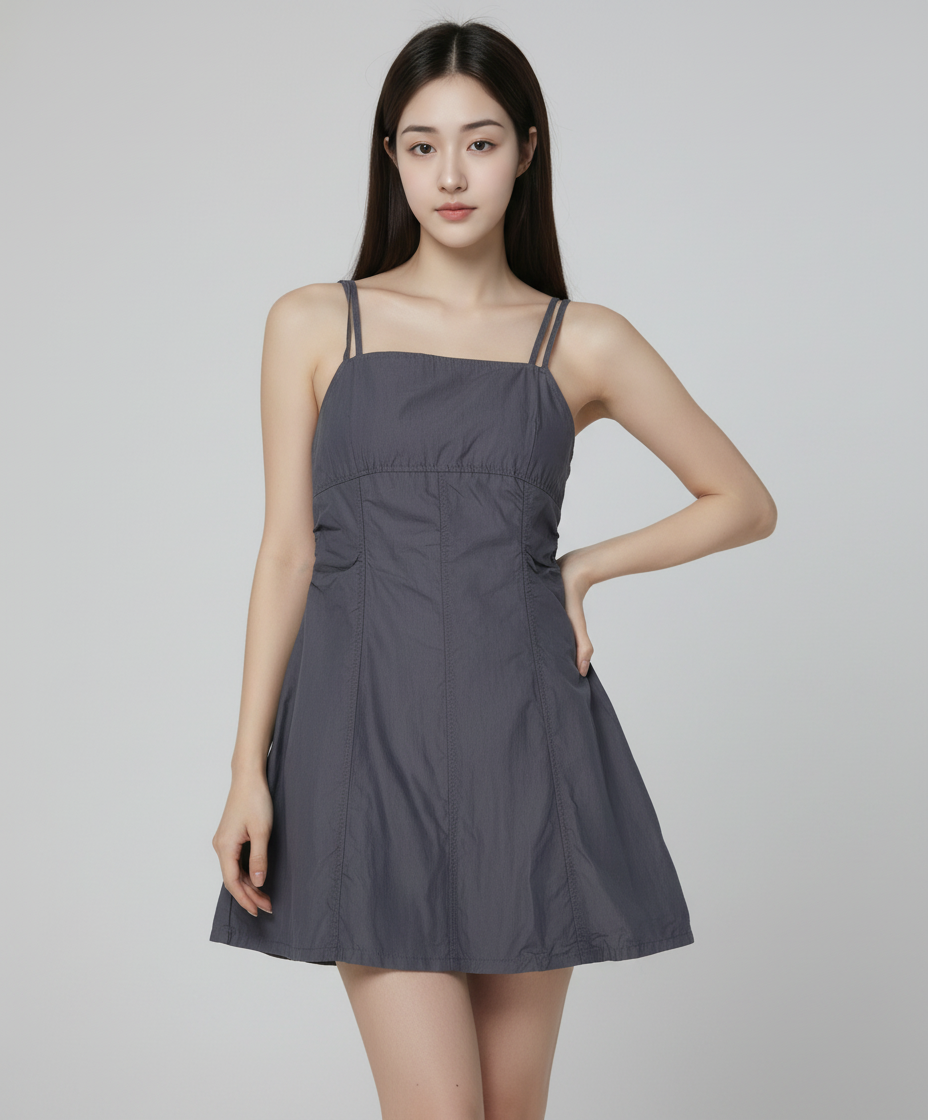 코튼 나일론 슬리브리스 미니 원피스 네이비 (324771LY1R) S