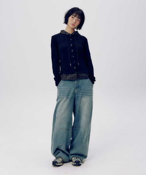 스팽글 스타 그래픽 내추럴 워시드 벌룬 와이드핏 데님 팬츠 [흑청]