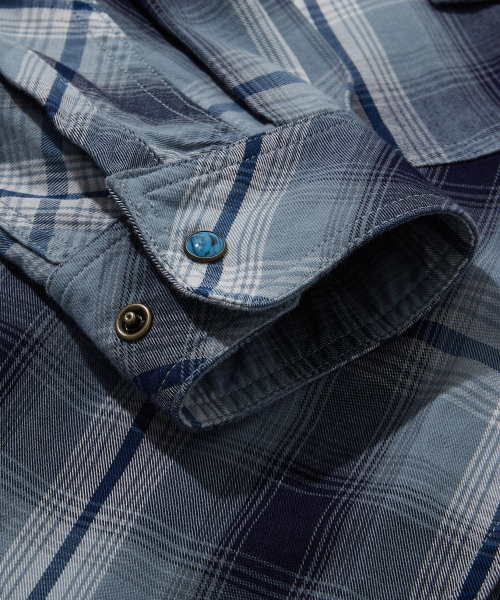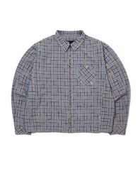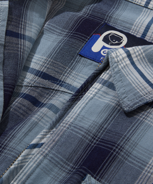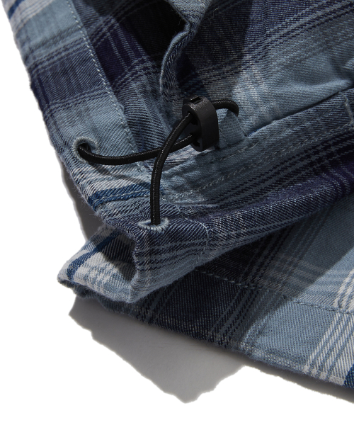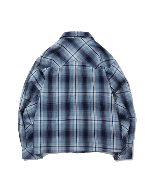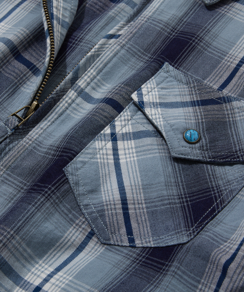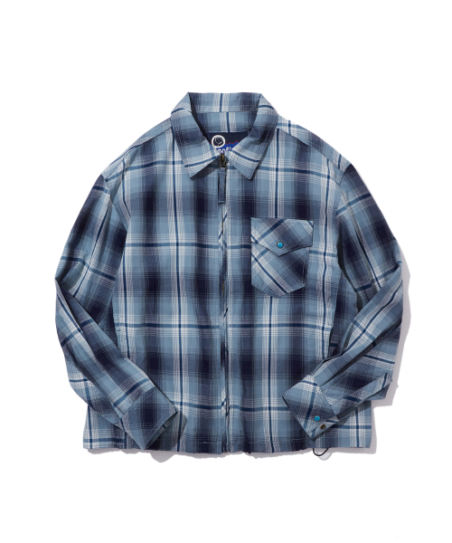 워시드 코튼 체크 집업 셔츠 틸블루_FS1WJ05U