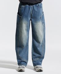밴딩 와이드 파이핑 사선 카고 팬츠 블루