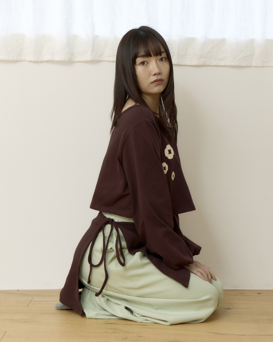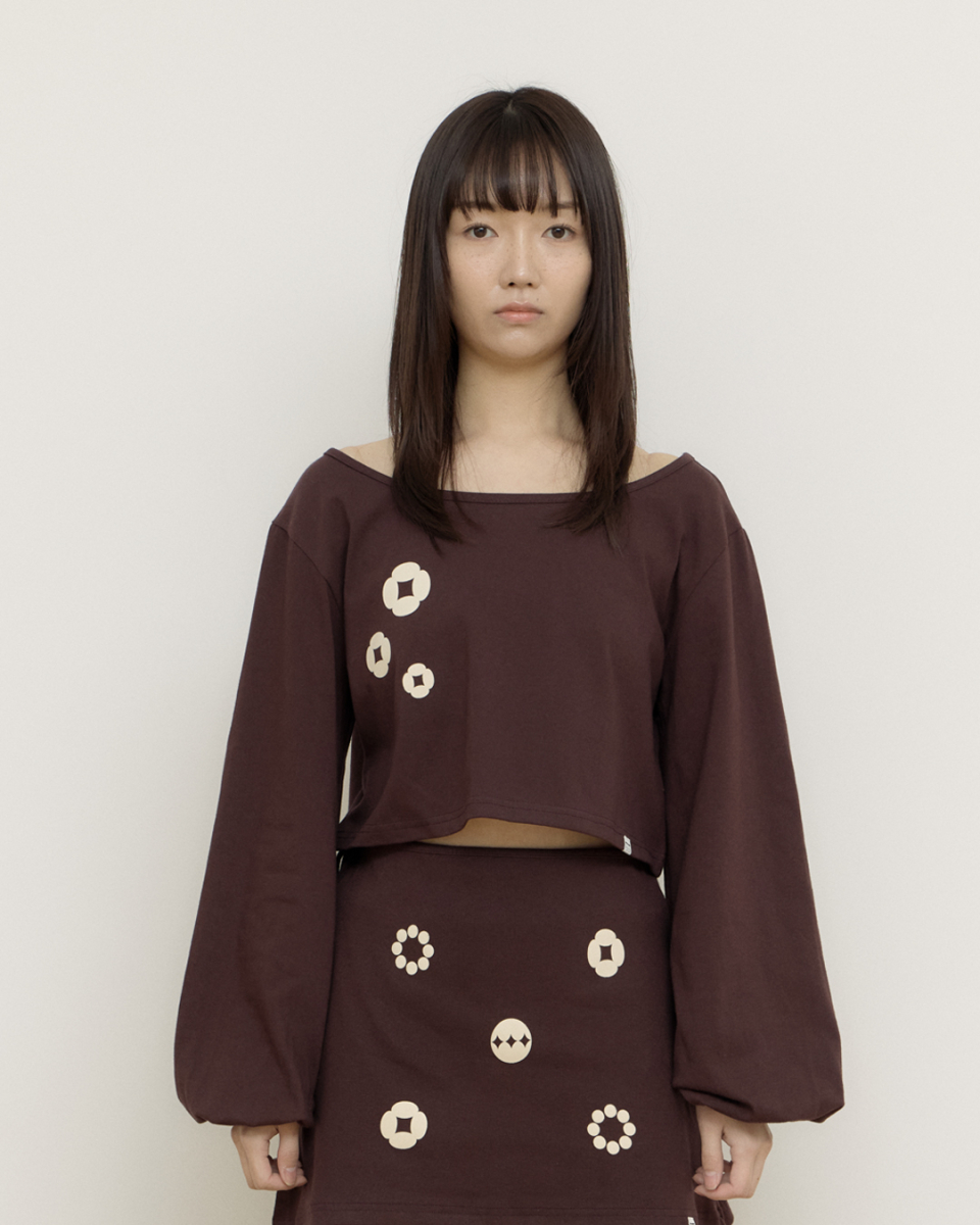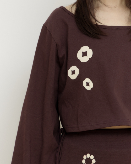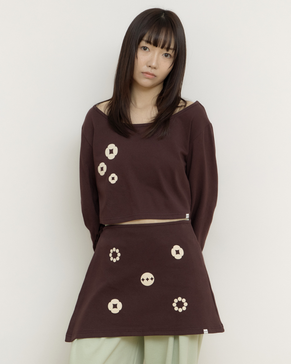 Ornament graphic wrap skirt와 세트인 크롭탑입니다.