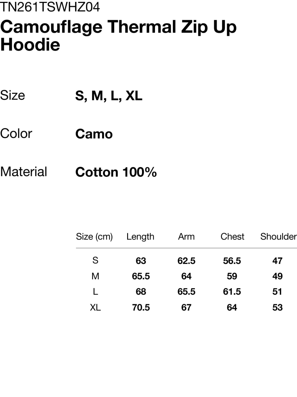 Camouflage Thermal Zip Up Hoodie Camo