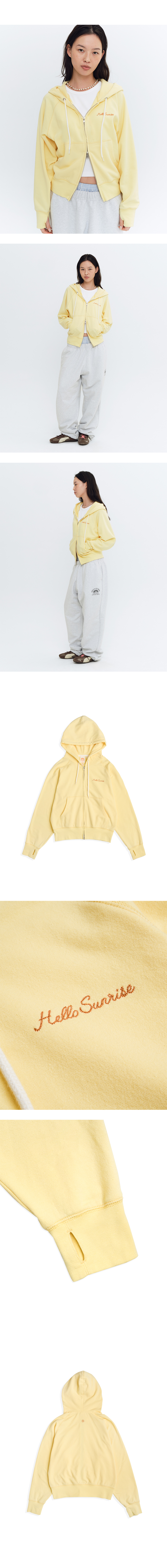 Hello Sunrise 여성 사이즈의 후드 집업 스웻입니다.