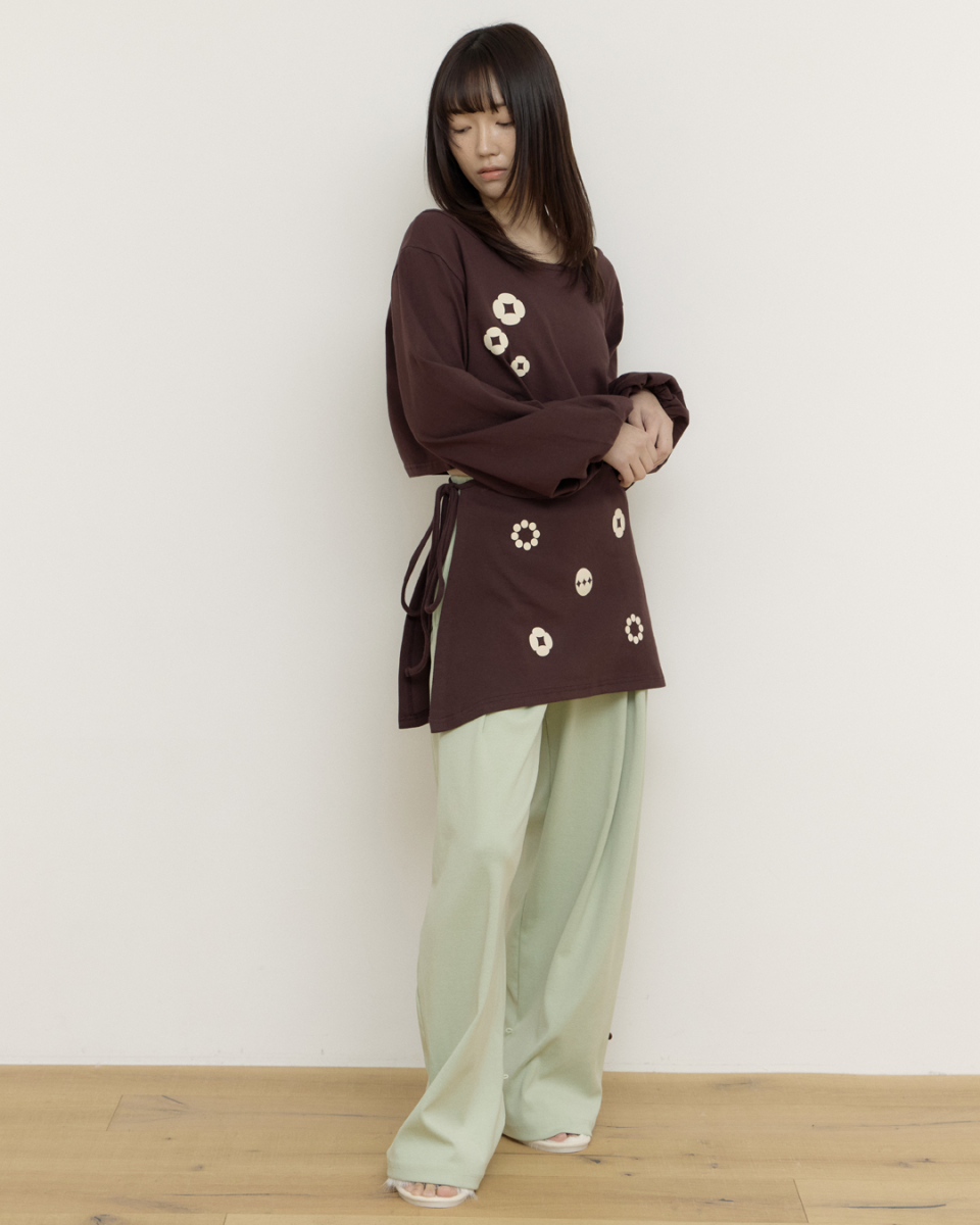 사이드의 끈을 묶어 착용합니다.