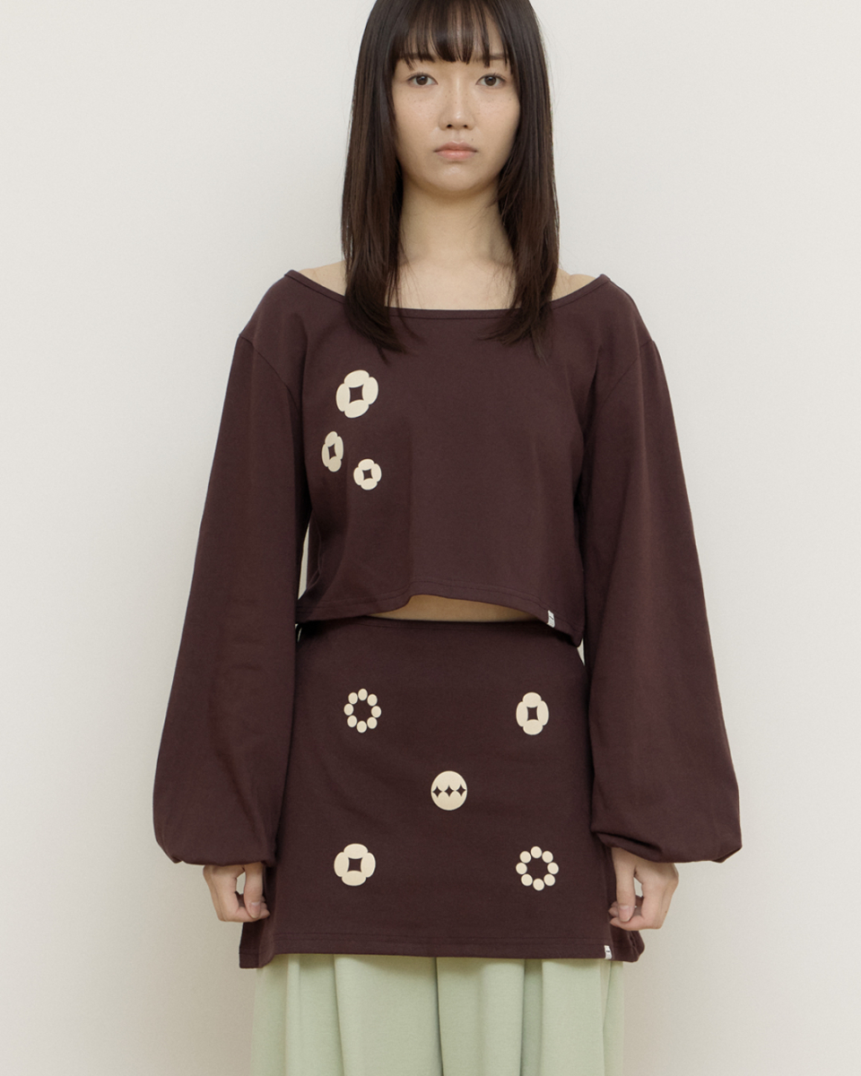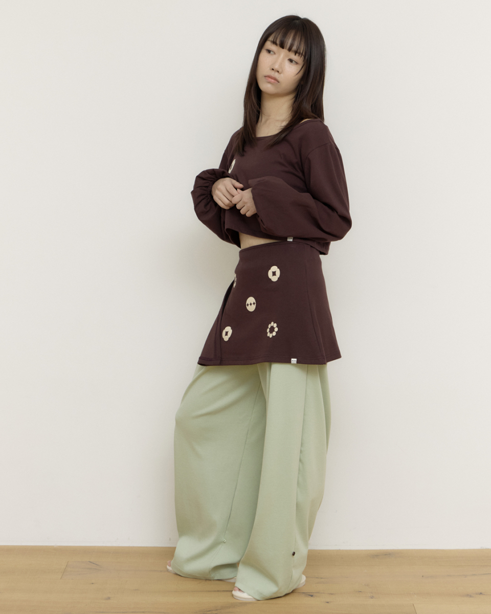 Ballon sleeve crop top과 세트인 랩스커트입니다.