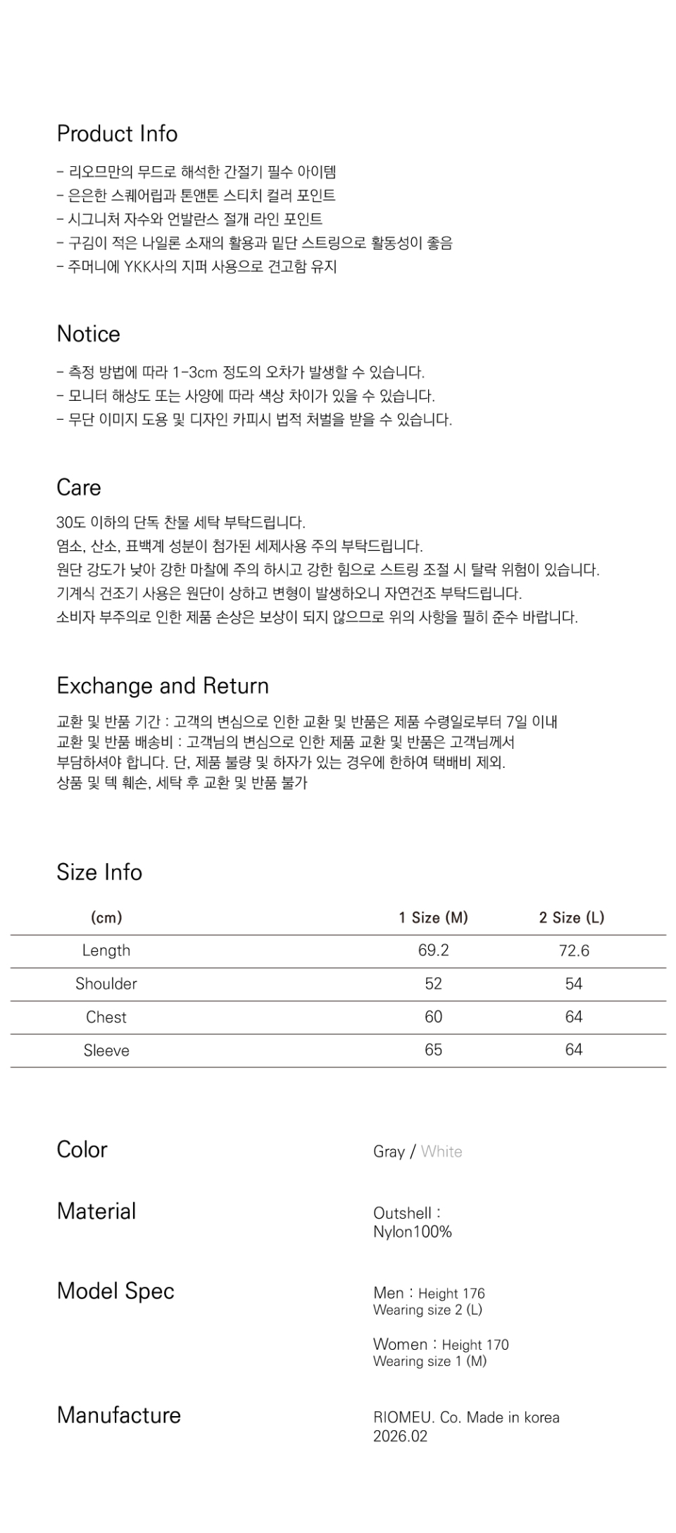 언발 커브드 라인 윈드 브레이커 자켓_Gray : RADIANT176