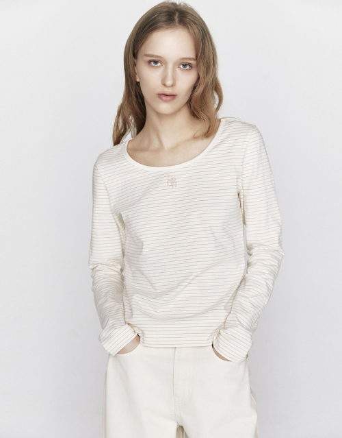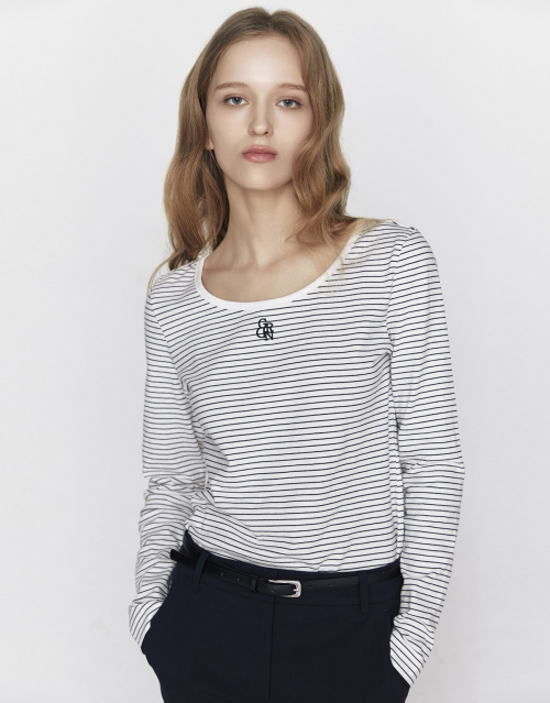 스쿱넥 스트라이프 긴팔 티셔츠 326503 [3color]