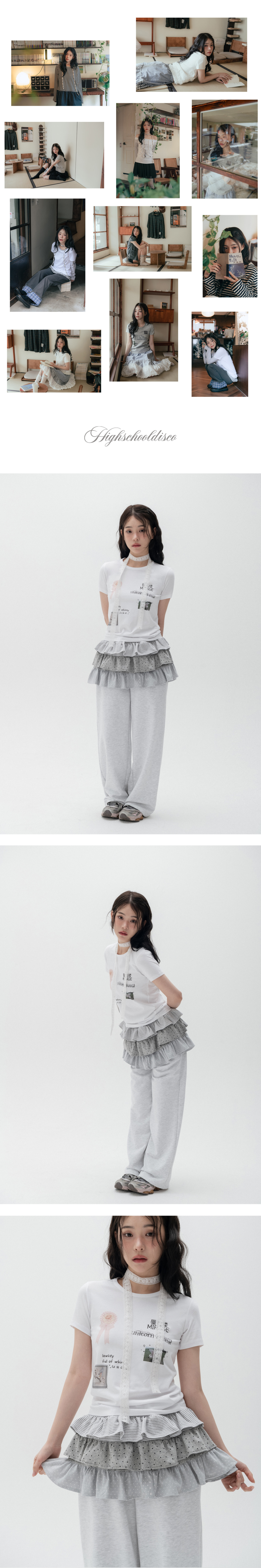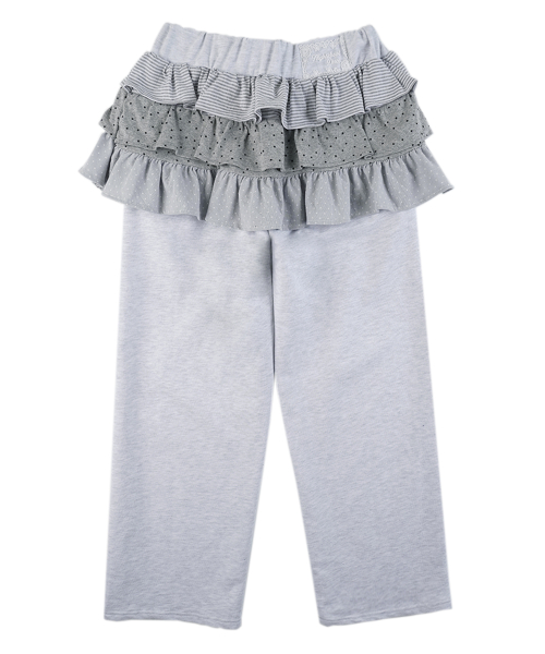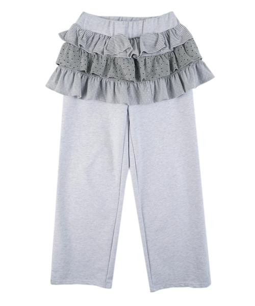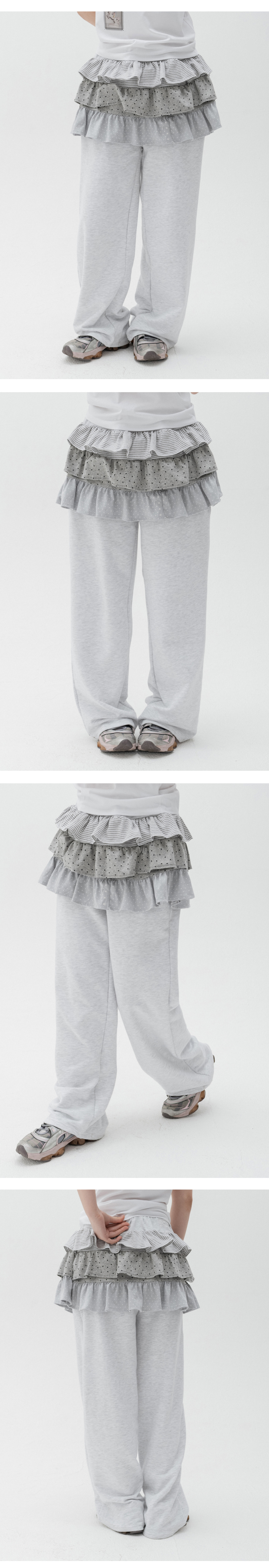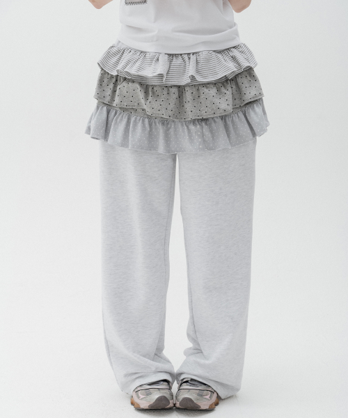 믹스패턴 캉캉 스커트 레이어드 스웻팬츠_화이트멜란지