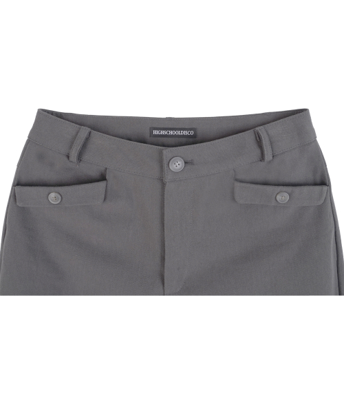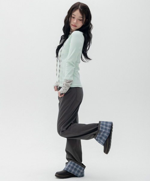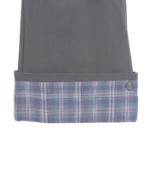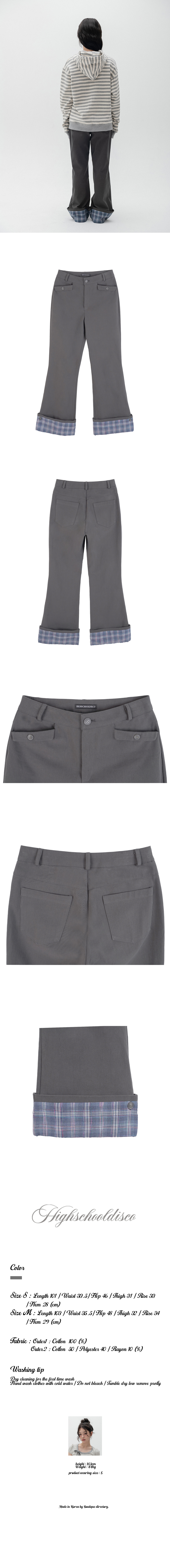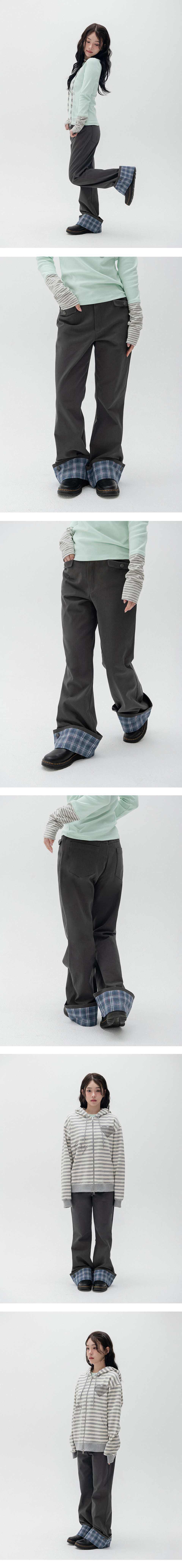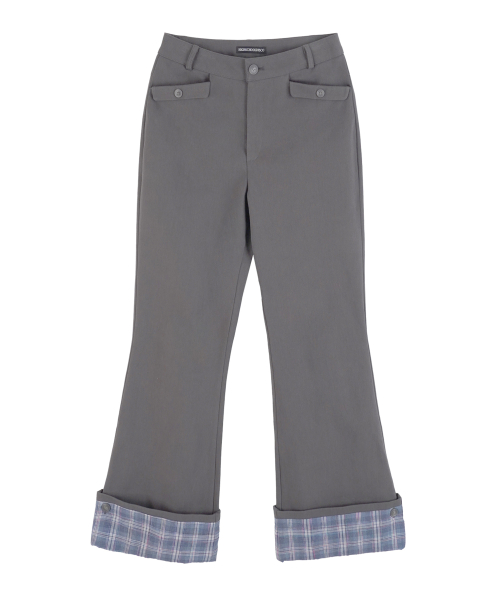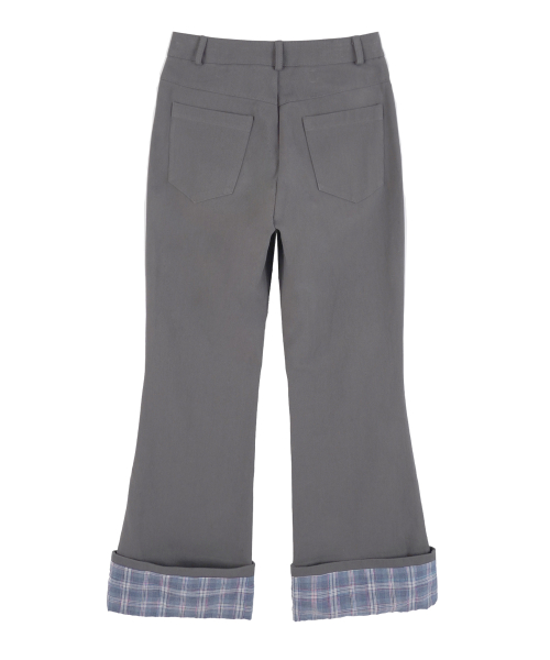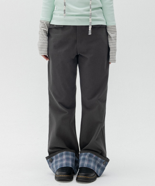롤업 체크 부츠컷 팬츠_차콜