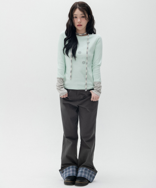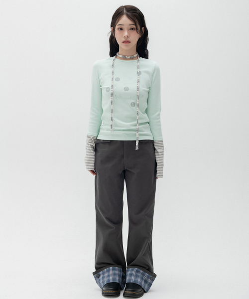 도트 그래픽 레이어드 롱슬리브_민트