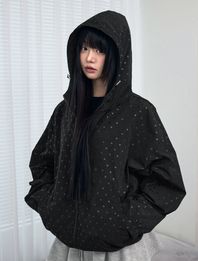 도트 하이넥 후드 바람막이 윈드브레이커 블랙
