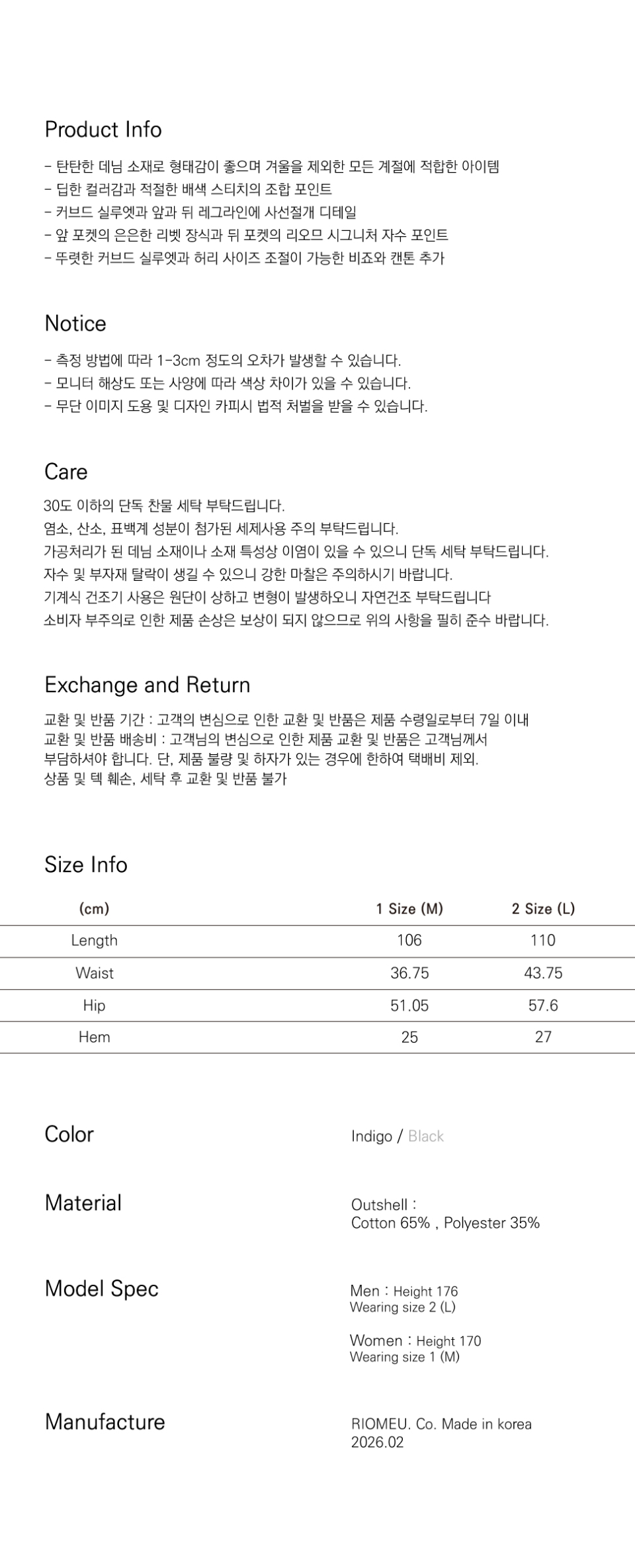 커브드 벌룬 데님 팬츠_Indigo : RADIANT169