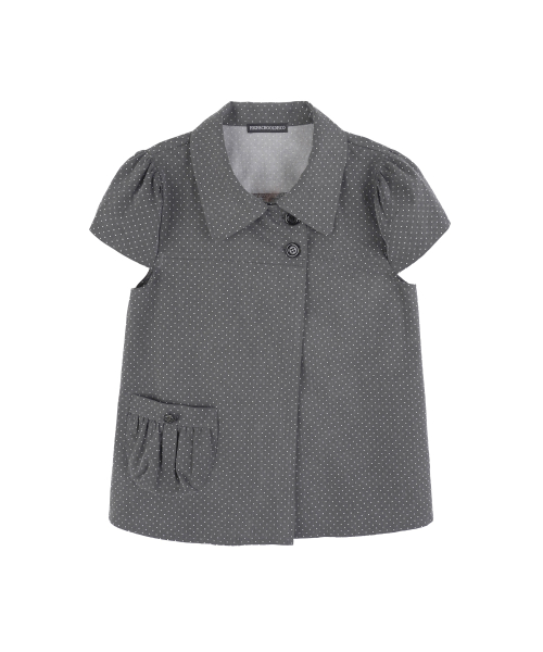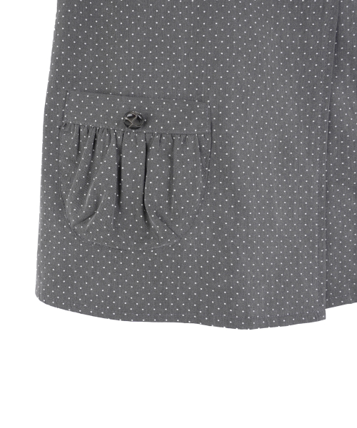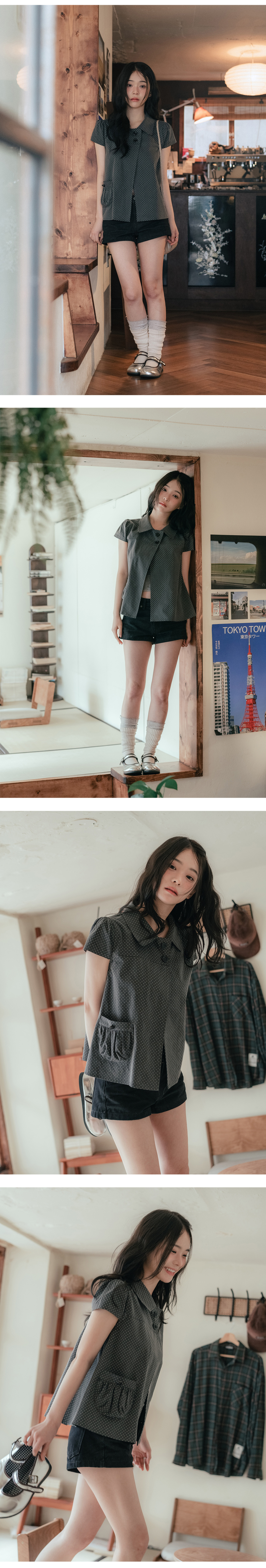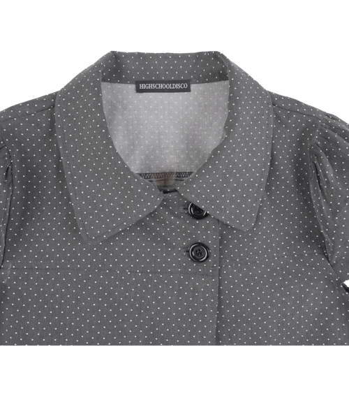 도트 버튼 퍼프소매 블라우스_차콜