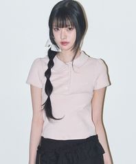 도트 핀턱 카라 티 핑크