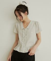 Frill jacquard cap sleeve blouse - Ash khaki