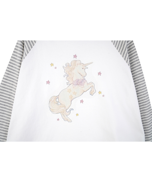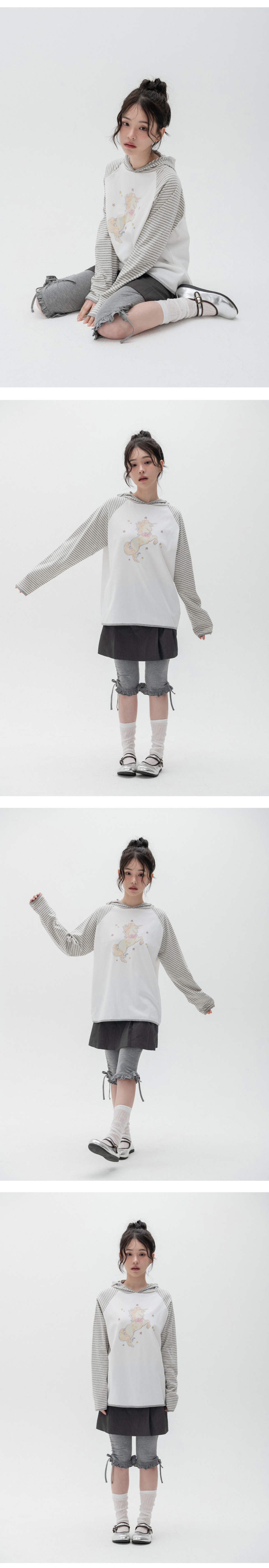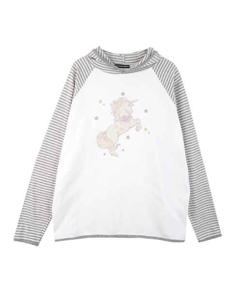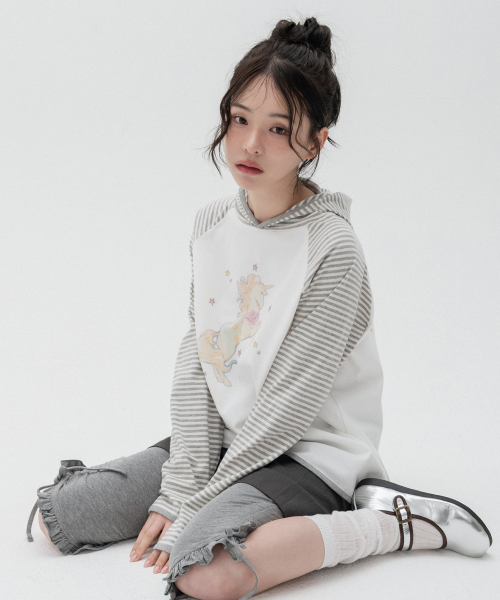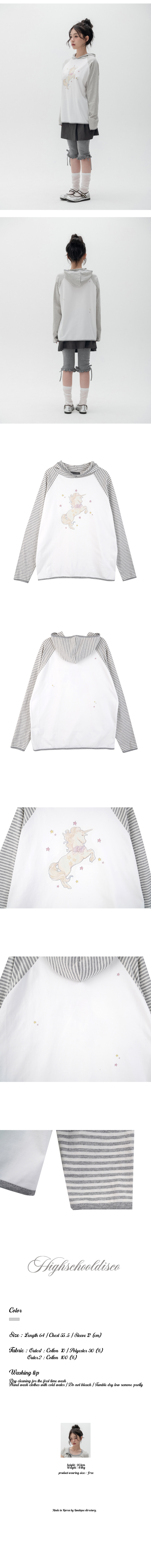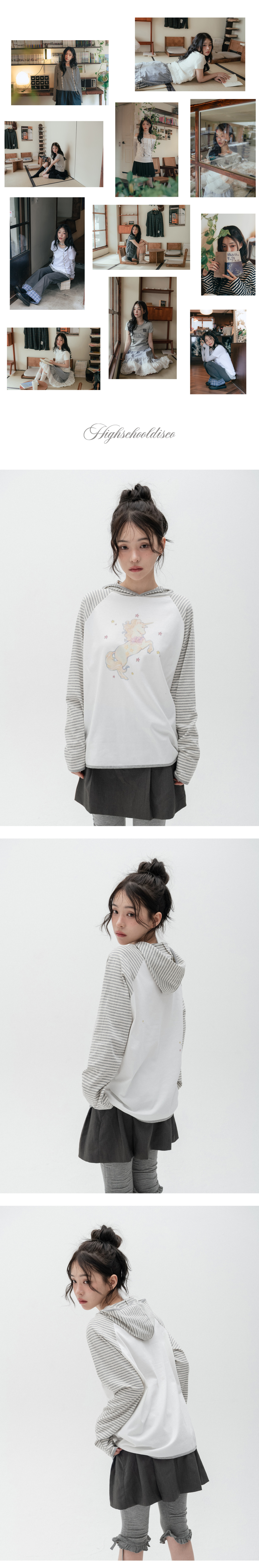 유니콘 그래픽 스트라이프 후드 롱슬리브_화이트
