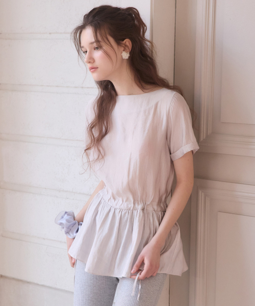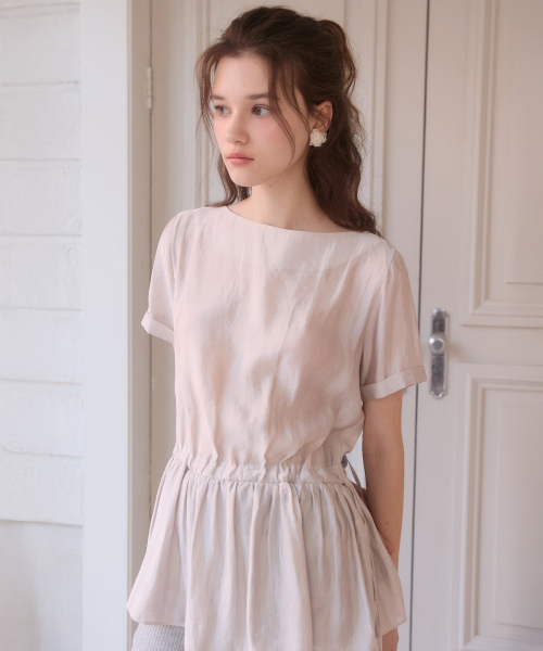Boat neck sheer string blouse - pinkgrey
