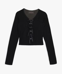 EYELET RIBBON TOP _BLACK