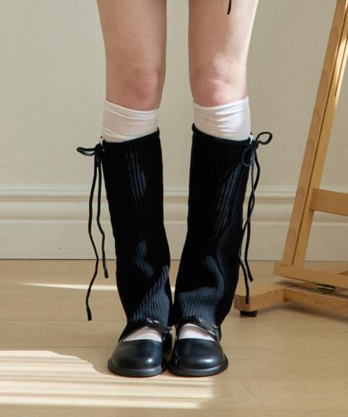RIBBON BELL KNIT LEG WARMER_BLACK