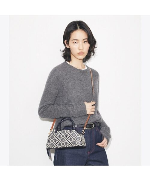 트렌디한 볼링백 쉐입의 미니 사첼백입니다. 탑핸들 또는 스트랩을 연결하여 크로스바디백으로도 착용할 수 있습니다. 간단한 소지품을 수납할 수 있는 사이즈로, 데일리백으로 추천드리며 활용도 높은 블랙, 화이트, 네이비 티모노그램 패턴 세 가지 컬러로 전개됩니다.