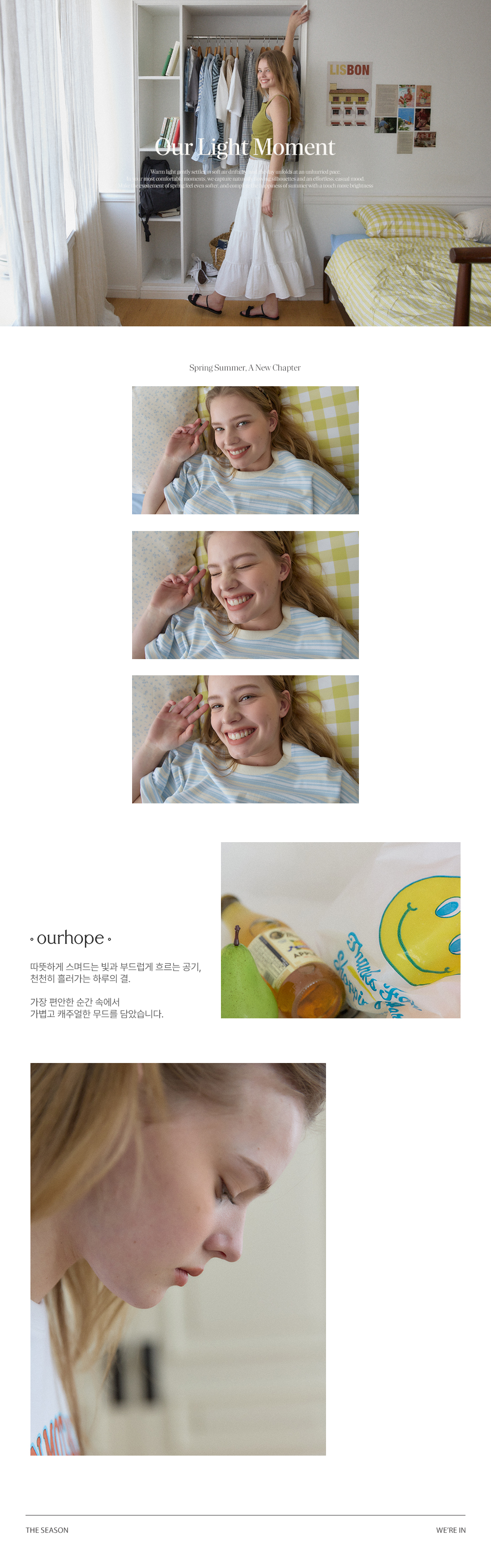 아워호프(OURHOPE)는 당신이 행복하길 바라는 마음으로 당신의 행복한 나날과 함께하는 옷을 만들고자 하는 브랜드입니다.