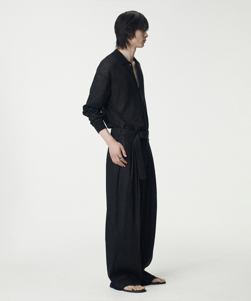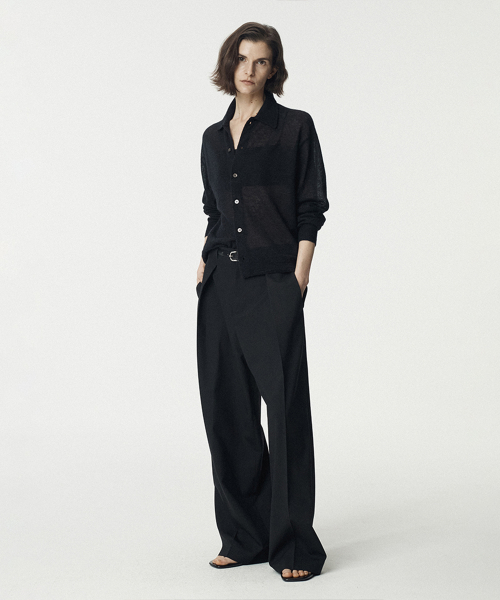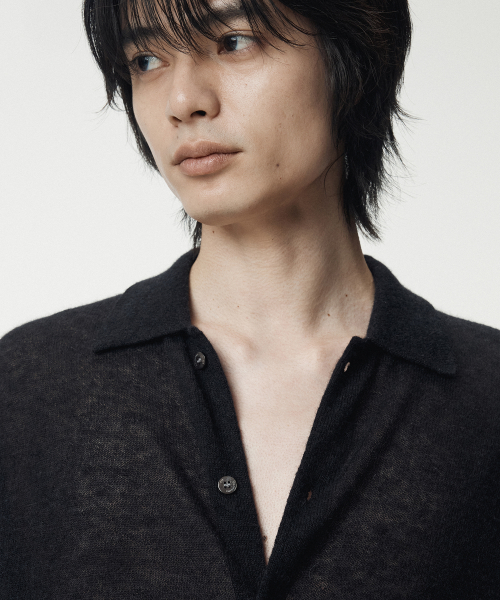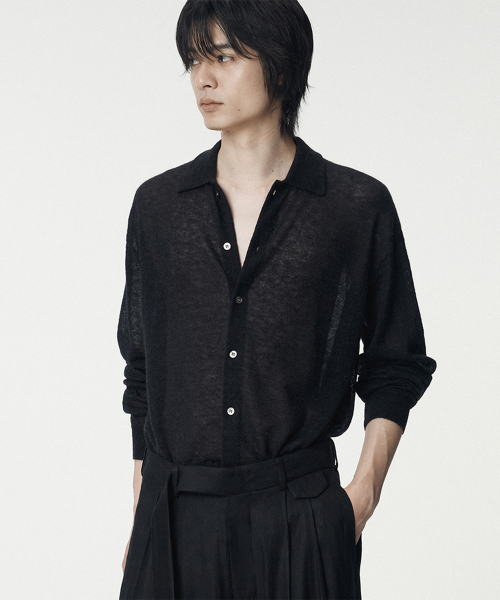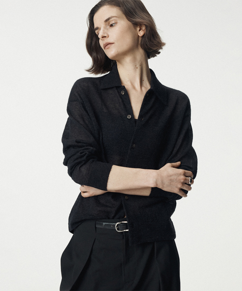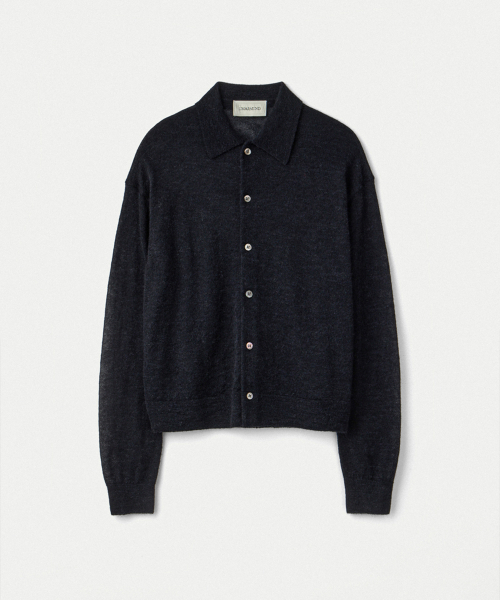 Italian Mohair Shirts Collared Cardigan_Black