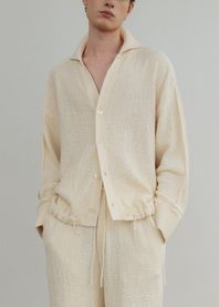 Organic cotton drawstring hem collared jacket_Noon