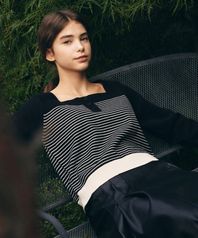 스트라이프 컬러링 쓰리 버튼 스퀘어 넥 니트 - 블랙