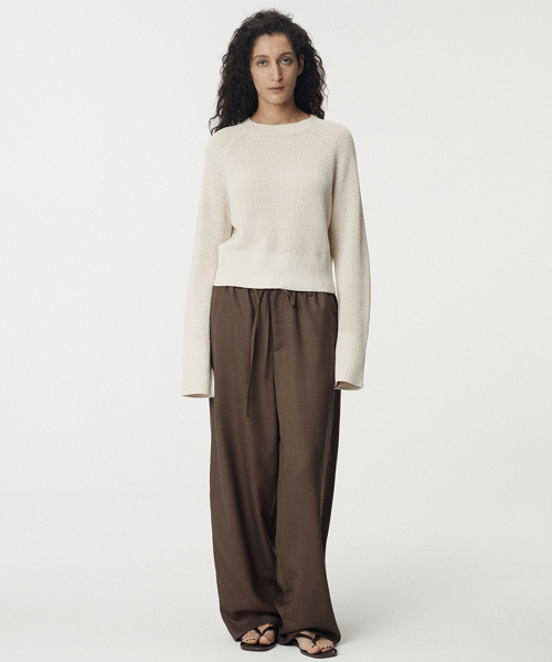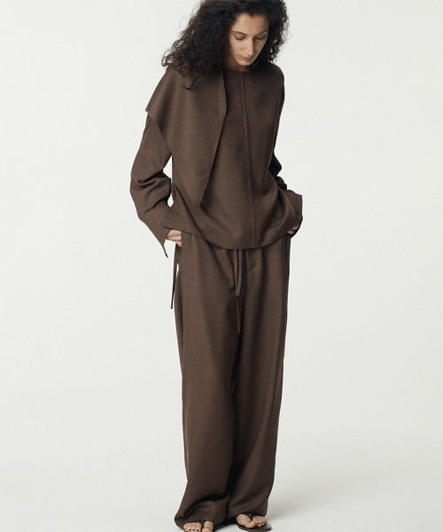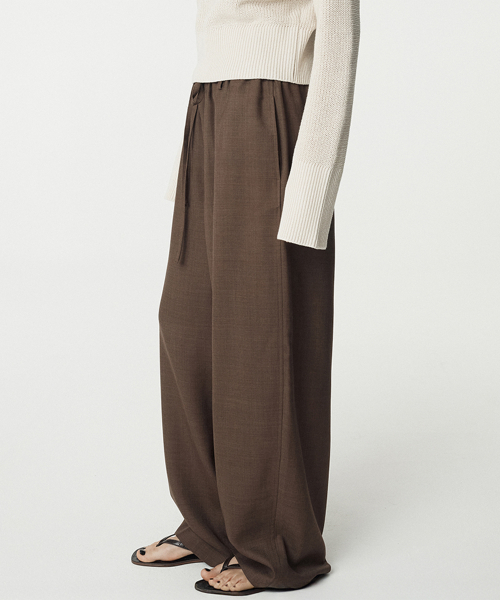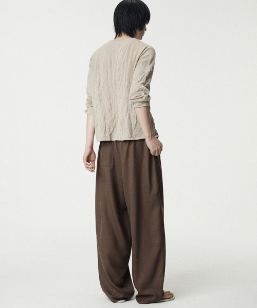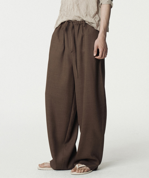 Tropical Wool Tucked Pants_Beige