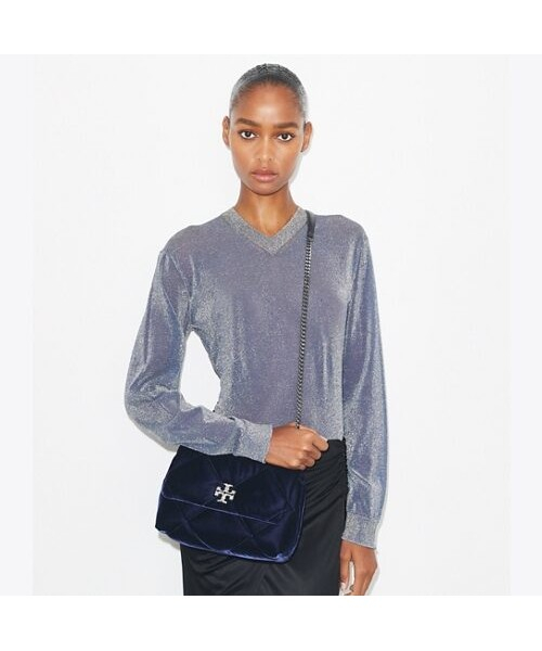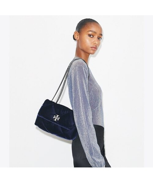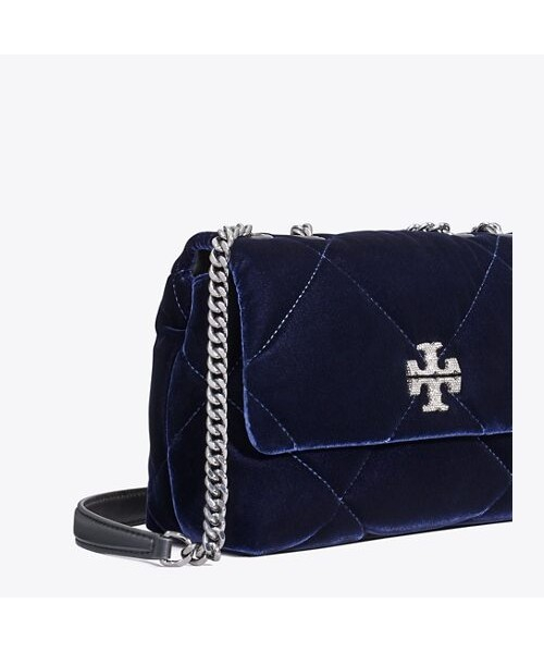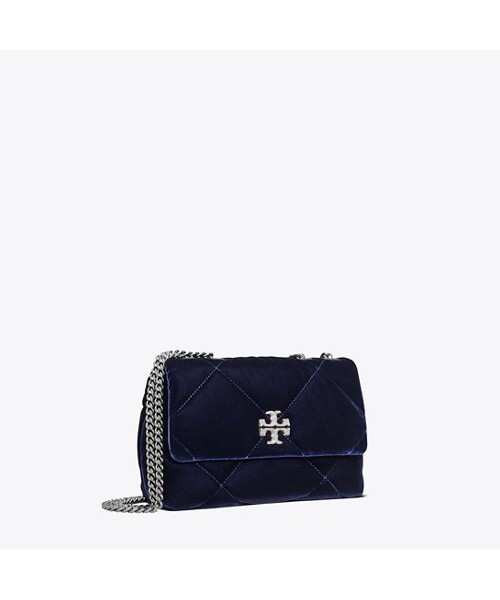 키라 다이아몬드 퀼트 스몰 컨버터블 숄더백입니다. 다이아몬드 퀼팅 디자인이 더해져 페미닌한 무드를 더했으며, 실용적인 디자인으로 활용도가 높습니다. 홀리데이 시즌을 맞이하여 고급스러운 네이비 컬러의 벨벳 소재로 출시되었습니다.