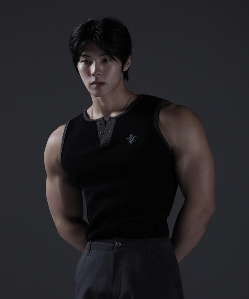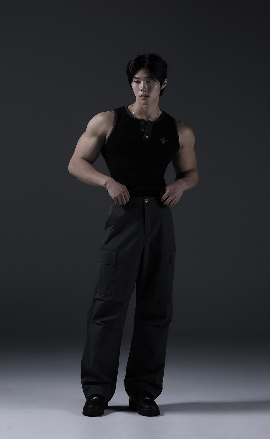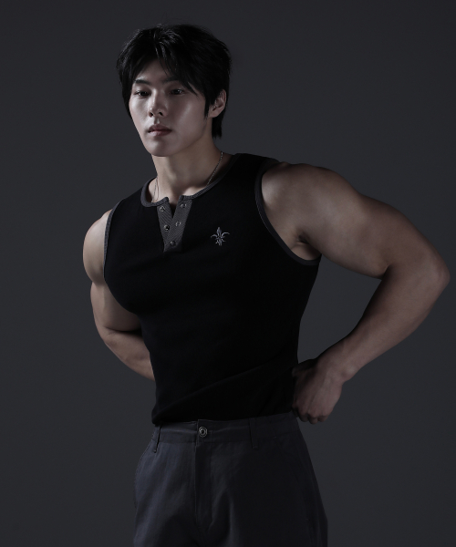 카미드 글로리 헨리넥 머슬핏 골지 반팔티셔츠 [그레이]