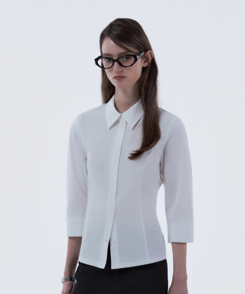 Mid-Sleeve Tailored Shirt - White